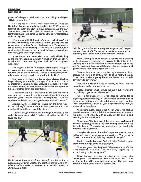 LINDBERG you want to work with if your looking to take your game to the next level,” said Detroit Redwings winger Johan Franzen. championship team.