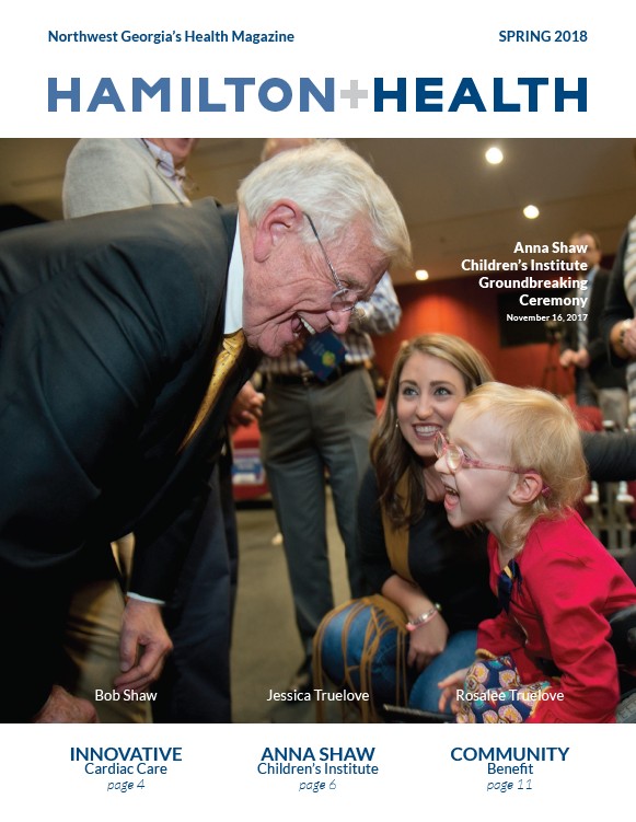 Northwest Georgia’s Health Magazine SPRING 2018 hAmilton+heAlth Anna Shaw Children’s Institute Groundbreaking Ceremony November 16, 2017 a eica ree aee ree COMMUNITY ANNA SHAW INNOVATIVE Cardiac Care page 4 page 6 page 11