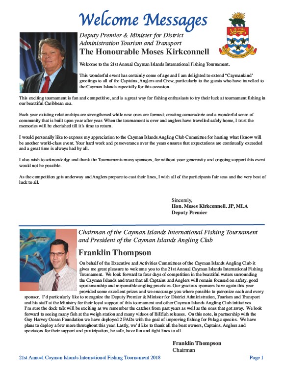 Welcome to the 21st Annual Cayman Islands International Fishing Tournament.