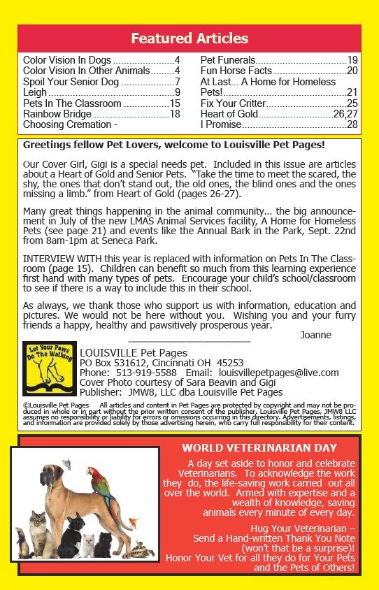 ©Louisville Pet Pages All articles and content in Pet Pages are protected by copyright and may not be produced