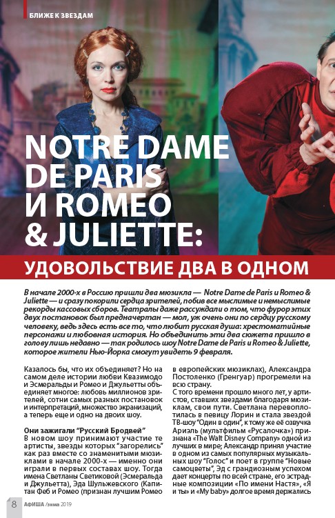 В начале 2000-х в Россию пришли два мюзикла — Notre Dame de Paris и Romeo &