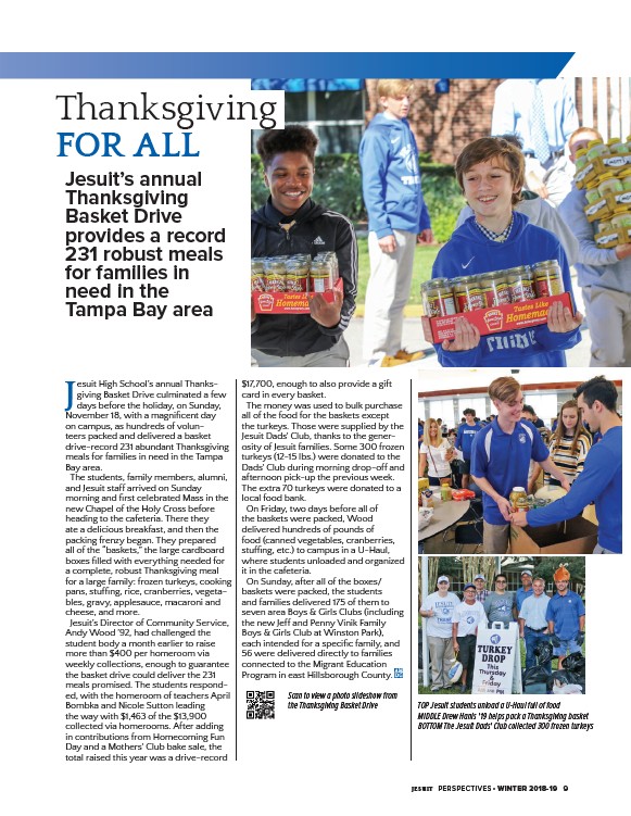 BOTTOM The Jesuit Dads' Club collected 300 frozen turkeys