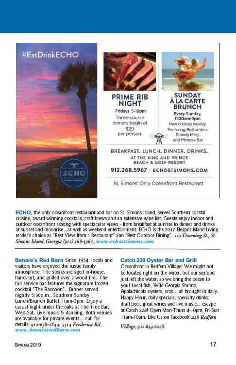 Simons Island, Georgia (912) 268-5967., www.echostsimons.com