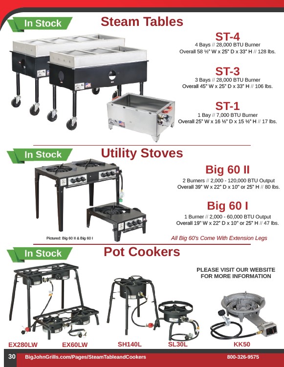 30 BigJohnGrills.com/Pages/SteamTableandCookers 800-326-9575