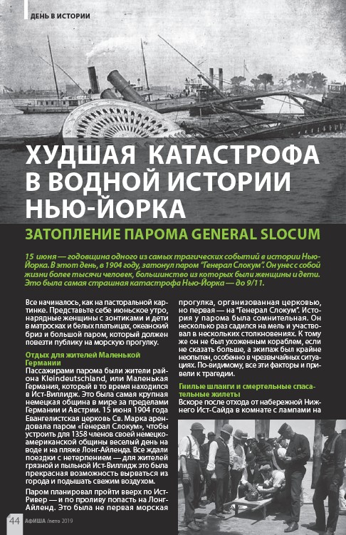 Йорка. В этот день, в 1904 году, затонул паром “Генерал Слокум”. Он унес с собой