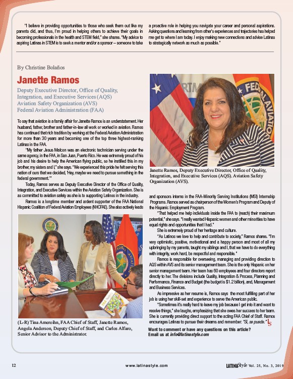 as committed to aviation safety as she is to supporting Latinos in the industry.