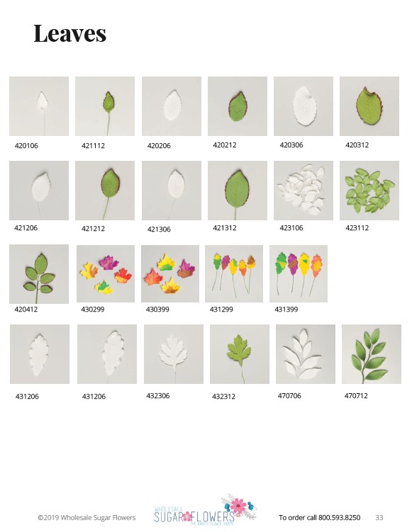 421112 420206 420212 420306 420312 420106 421206 421212 421306 421312 423106 423112 420412 430299 430399 431299 431399 431206 431206 432306 432312 470706 470712 To order call 800.593.8250 Leaves ©2019 Wholesale Sugar Flowers 33