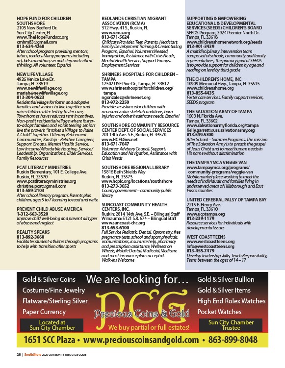 28 | SouthShore 2020 COMMUNITY RESOURCE GUIDE