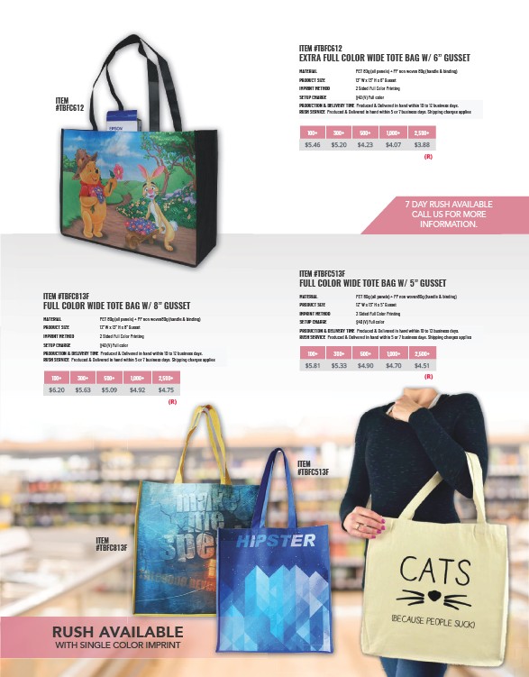 EXTRA FULL COLOR WIDE TOTE BAG W/ 6” GUSSET
