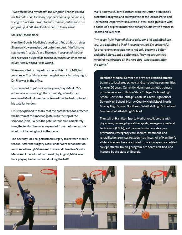 rehabilitation services to student athletes. All of Hamilton’s