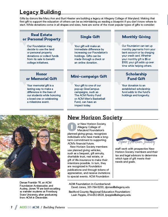 Gifts by donors like Mary Ann and Burt Hiester are building a legacy at Allegany College of Maryland. Making that