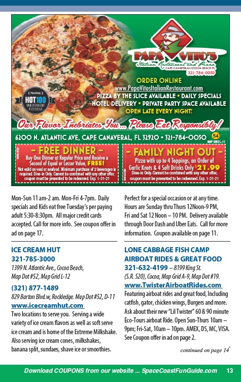 Download COUPONS from our website ... SpaceCoastFunGuide.com 13