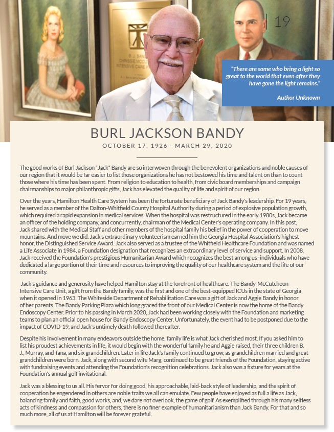 Over the years, Hamilton Health Care System has been the fortunate beneficiary of Jack Bandy’s leadership. For 19 years,