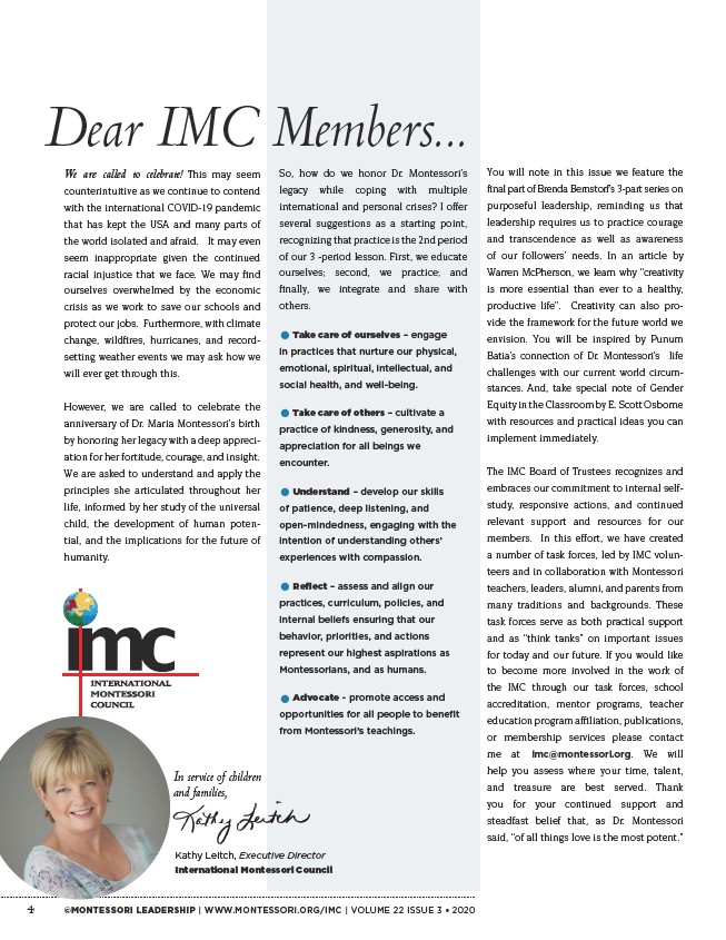 ©MONTESSORI LEADERSHIP | WWW.MONTESSORI.ORG/IMC | VOLUME 22 ISSUE 3 • 2020