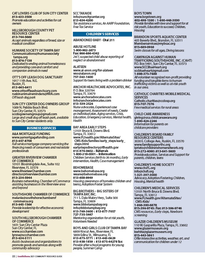 22 | SouthShore 2021 COMMUNITY RESOURCE GUIDE