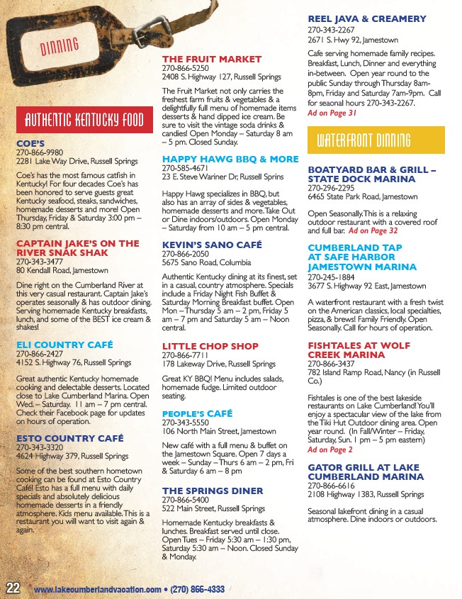 22 www.lakecumberlandvacation.com • (270) 866-4333