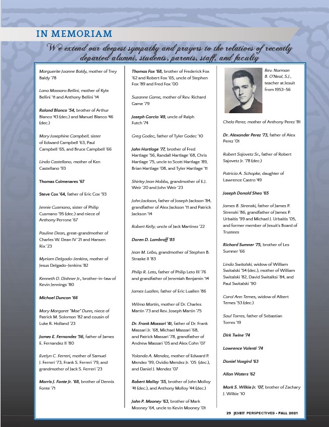 W e extend our deepest sympathy and prayers to the relatives of recently