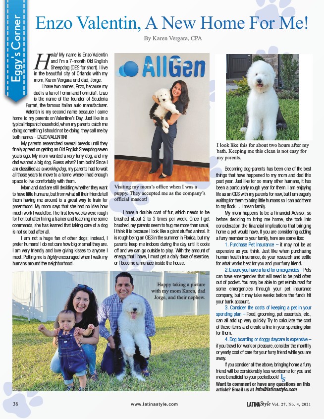 38 www.latinastyle.com LATINAStyle Vol. 27, No. 4, 2021 Becoming dog-parents has been one of the best