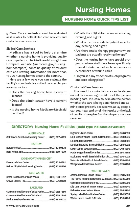 DIRECTORY: Nursing Home Facilities (Bold type indicates advertiser)