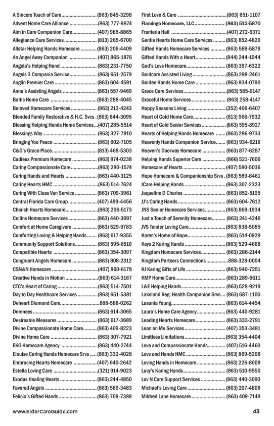 Laura’s Home Care Agency ..................... (863) 440-9281