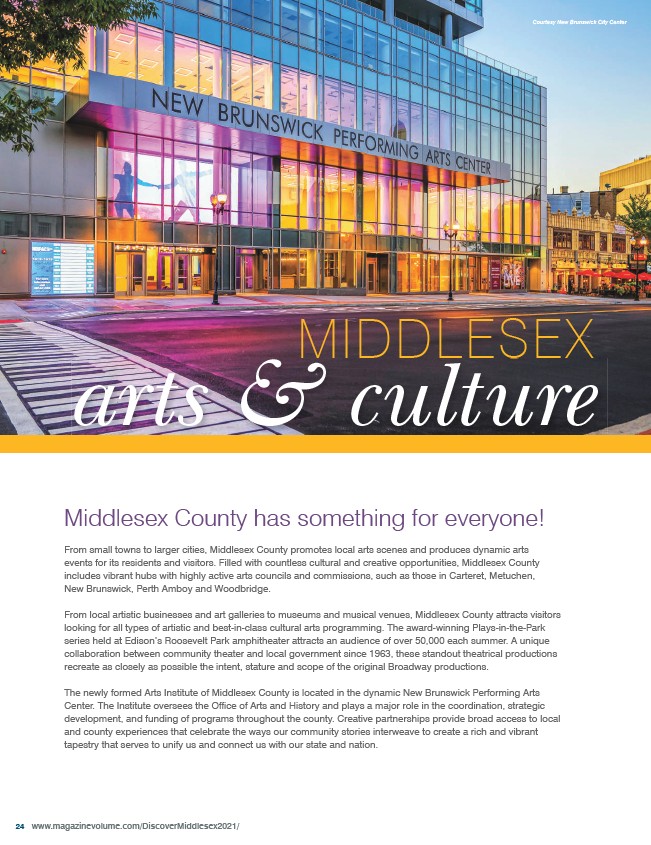 events for its residents and visitors. Filled with countless cultural and creative opportunities, Middlesex County