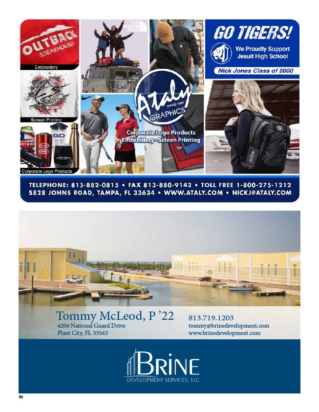 4206 National Guard Drive Plant City, FL 33563 813.719.1203 tommy@brinedevelopment.com www.brinedevelopment.com Tommy McLeod, P ’22 80