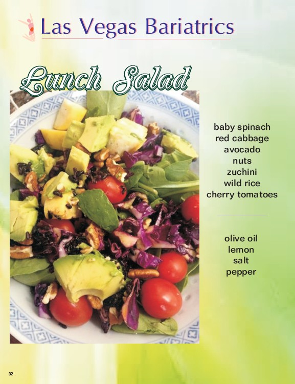 Las Vegas Bariatrics LunchSalad baby spinach red cabbage avocado nuts zuchini wild rice cherry tomatoes olive oil lemon salt pepper 32
