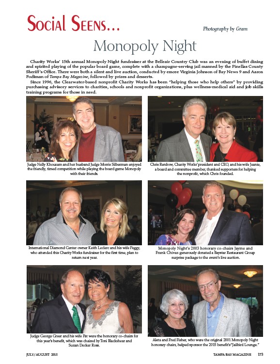 Charity Works’ 15th annual Monopoly Night fundraiser at the Belleair Country Club was an evening of buffet dining