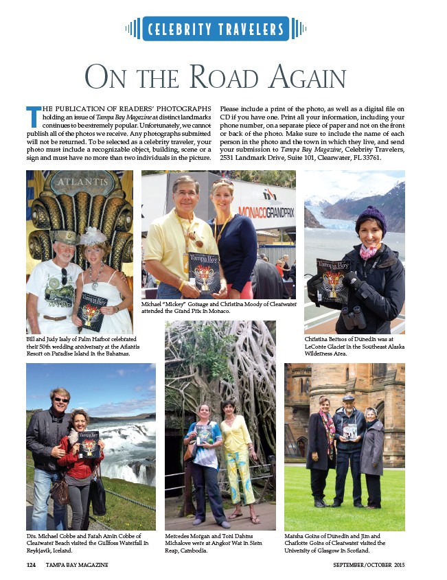 your submission to Tampa Bay Magazine, Celebrity Travelers,