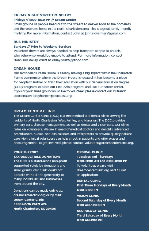 encouragement. To get involved, please contact volunteer@dreamcenterclinic.org.