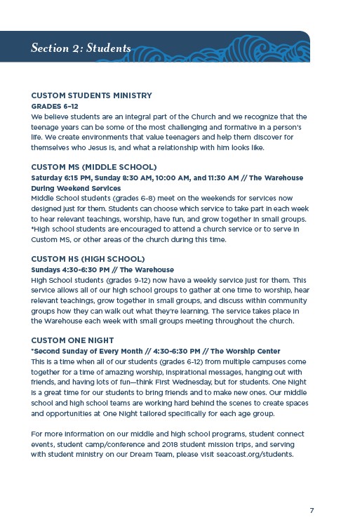 with student ministry on our Dream Team, please visit seacoast.org/students.