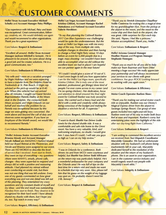 12 MEARS IN MOTION NEWSLETTER • January - February 2018