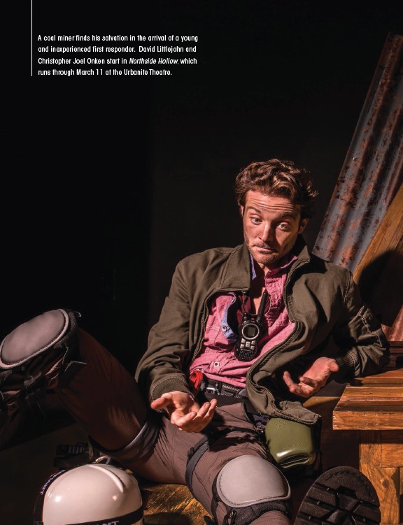A coal miner finds his salvation in the arrival of a young and inexperienced first responder. David Littlejohn and Christopher Joel Onken start in Northside Hollow, which runs through March 11 at the Urbanite Theatre.