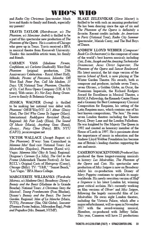 TICKETS: 813.229.STAR (7827) • STRAZCENTER.ORG 33