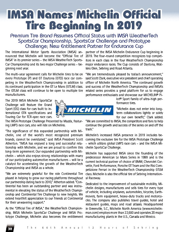 Michelin’s increased IMSA presence in 2019 includes becoming