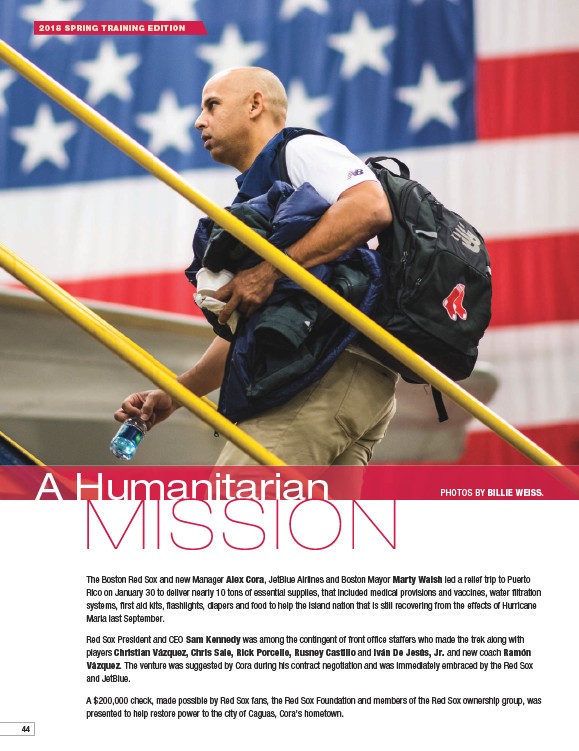 The Boston Red Sox and new Manager Alex Cora, JetBlue Airlines and Boston Mayor Marty Walsh led a relief trip to Puerto