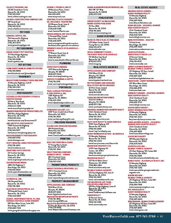 VisitBlairsvilleGA.com 877-745-5789 « 61