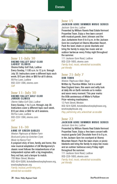 28 Okemo Valley Regional Guide YourPlaceInVermont.com