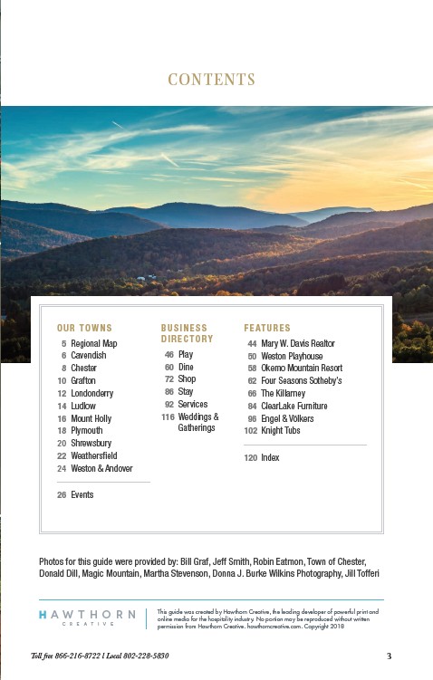 Photos for this guide were provided by: Bill Graf, Jeff Smith, Robin Eatmon, Town of Chester,