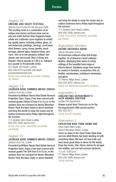 Toll free 866-216-8722 l Local 802-228-5830 35