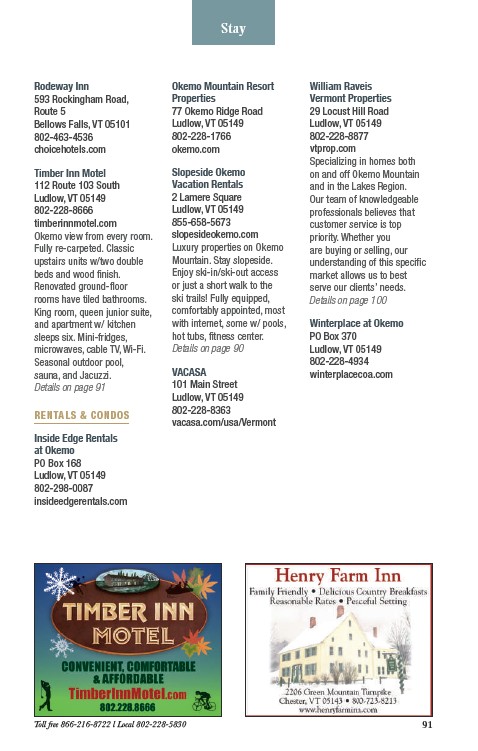 Toll free 866-216-8722 l Local 802-228-5830 91