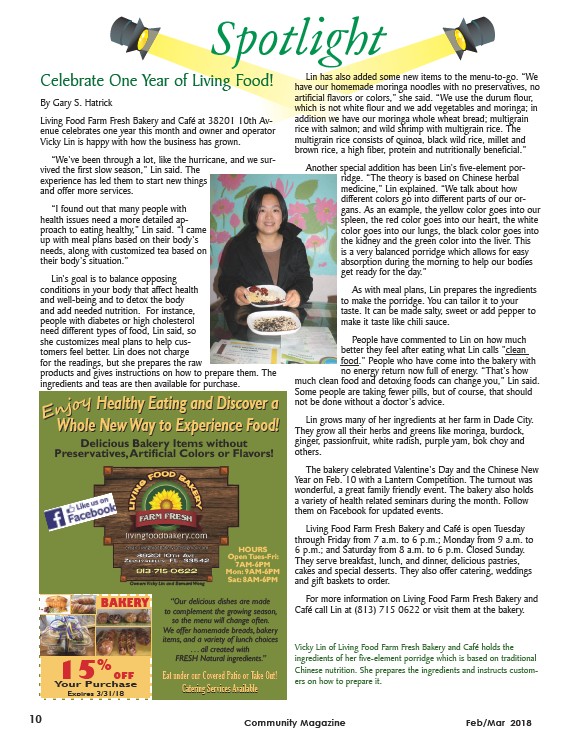 Vicky Lin of Living Food Farm Fresh Bakery and Café holds the