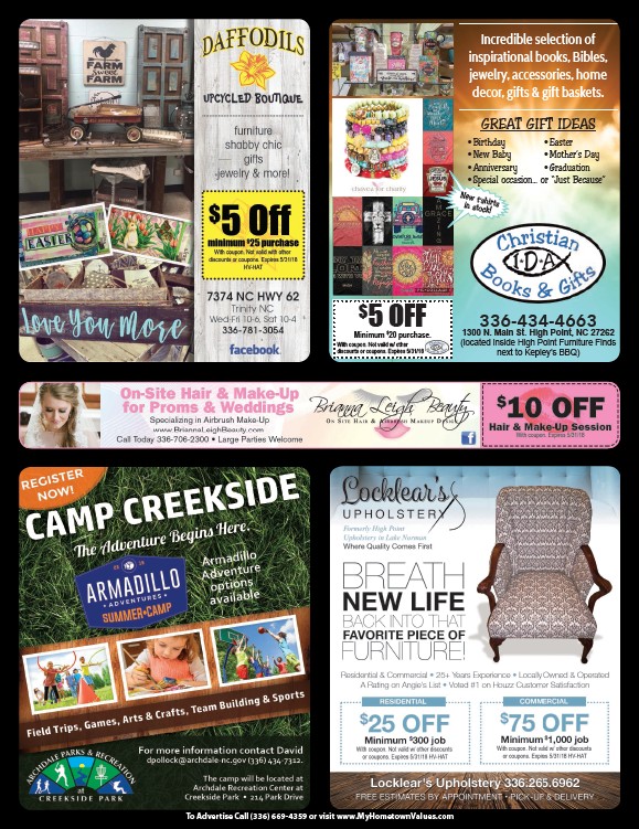 To Advertise Call (336) 669-4359 or visit www.MyHometownValues.com