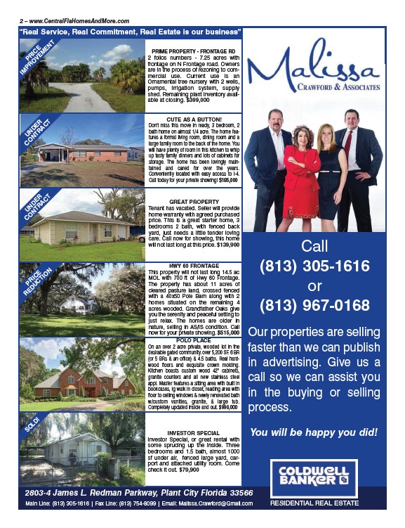 Main Line: (813) 305-1616 | Fax Line: (813) 754-8099 | Email: Malissa.Crawford@Gmail.com