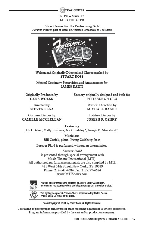 Forever Plaid is part of Bank of America Broadway at The Straz