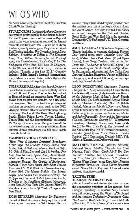 TICKETS: 813.229.STAR (7827) • STRAZCENTER.ORG 59
