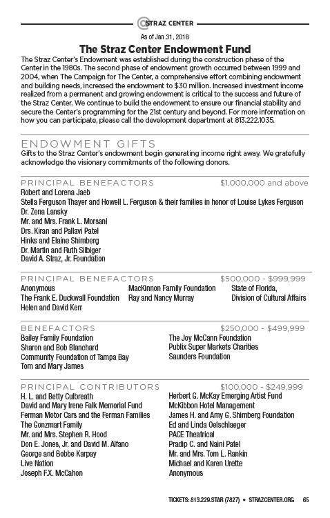 TICKETS: 813.229.STAR (7827) • STRAZCENTER.ORG 65