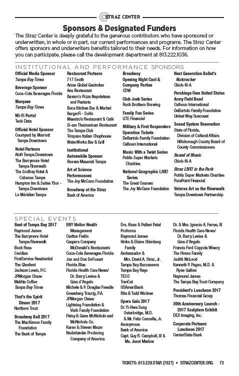 The Straz Center is deeply grateful to the generous contributors who have sponsored or