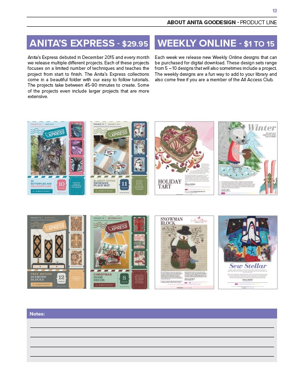 from 5 – 10 designs that will also sometimes include a project.