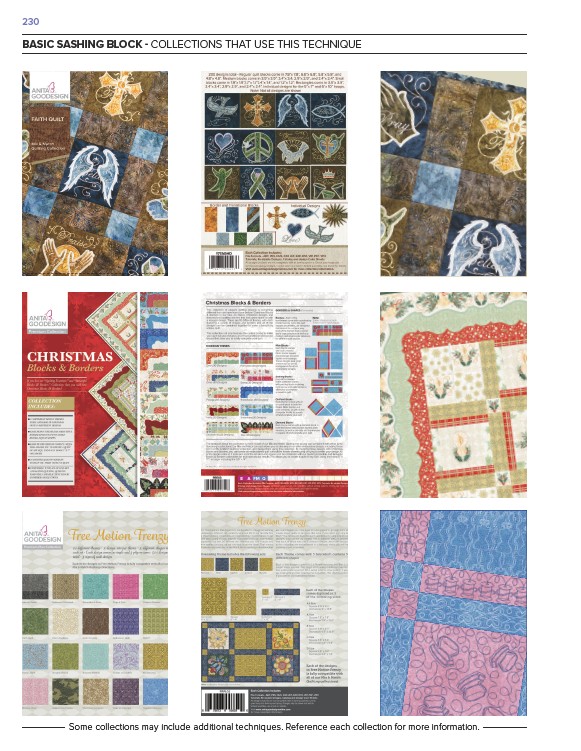 230 BASIC SASHING BLOCK - COLLECTIONS THAT USE THIS TECHNIQUE Some collections may include additional techniques. Reference each collection for more information.